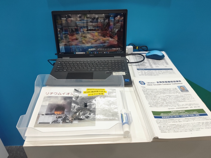 並行して、会場の外では各リサイクル関係団体による「循環型社会形成に関連する先進的な取り組みの展示コーナー」が開設され、全容協も活動内容について展示を実施しました。当日は